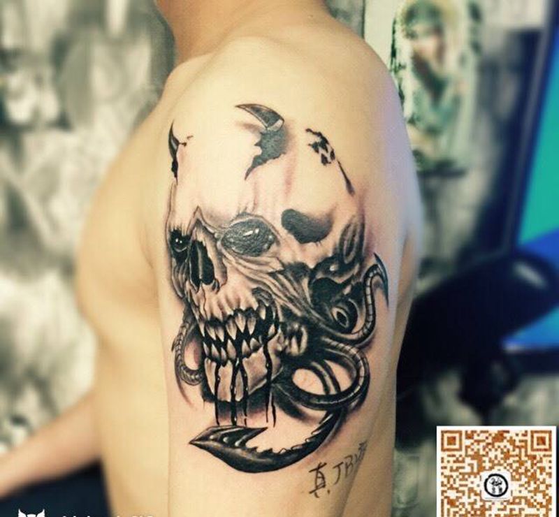 当前位置: 首页 >广东省深圳市纹身店-深圳鬼舞刺青工作室纹身图案>骷髅纹身图片