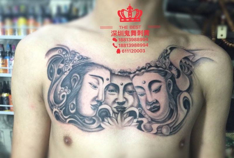 当前位置: 首页 >广东省深圳市纹身店-深圳鬼舞刺青工作室纹身图案>大V三面佛纹身图片
