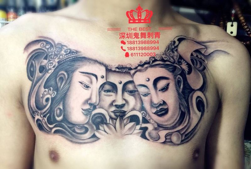 当前位置: 首页 >广东省深圳市纹身店-深圳鬼舞刺青工作室纹身图案>大V三面佛纹身图片