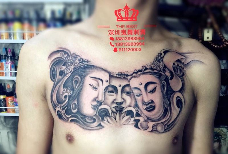 当前位置: 首页 >广东省深圳市纹身店-深圳鬼舞刺青工作室纹身图案>大V三面佛纹身图片