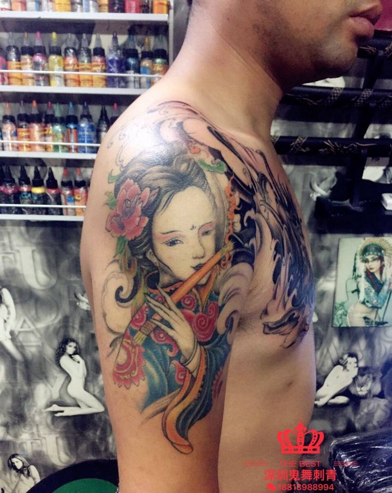 • 纹身吧推荐的披肩图腾半胛纹身图案作品展示