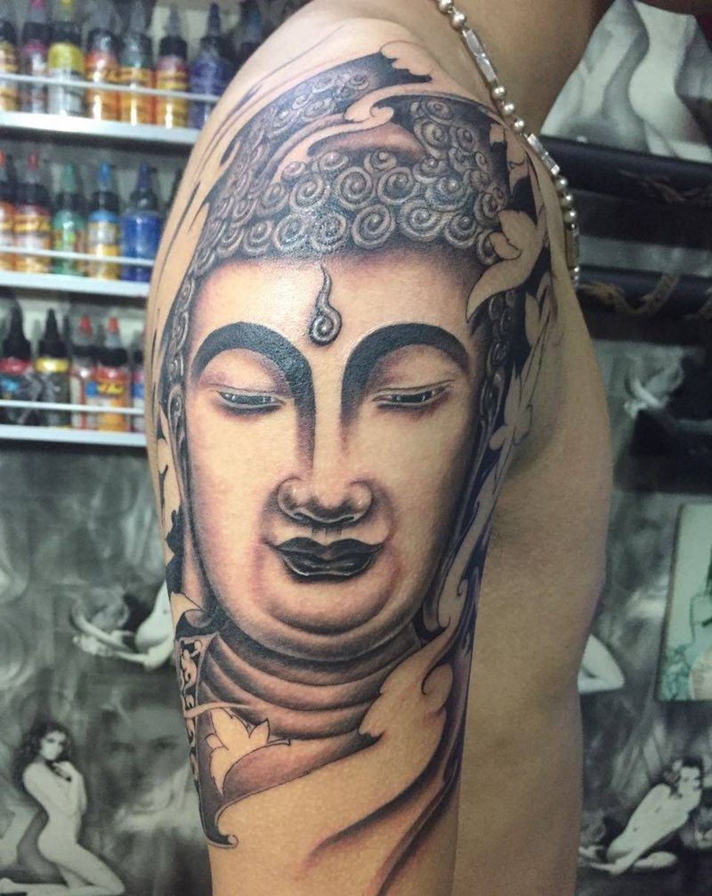 当前位置: 首页 >广东省深圳市纹身店-深圳鬼舞刺青工作室纹身图案>心中有曲自然嗨,心中有佛无需拜纹身图片