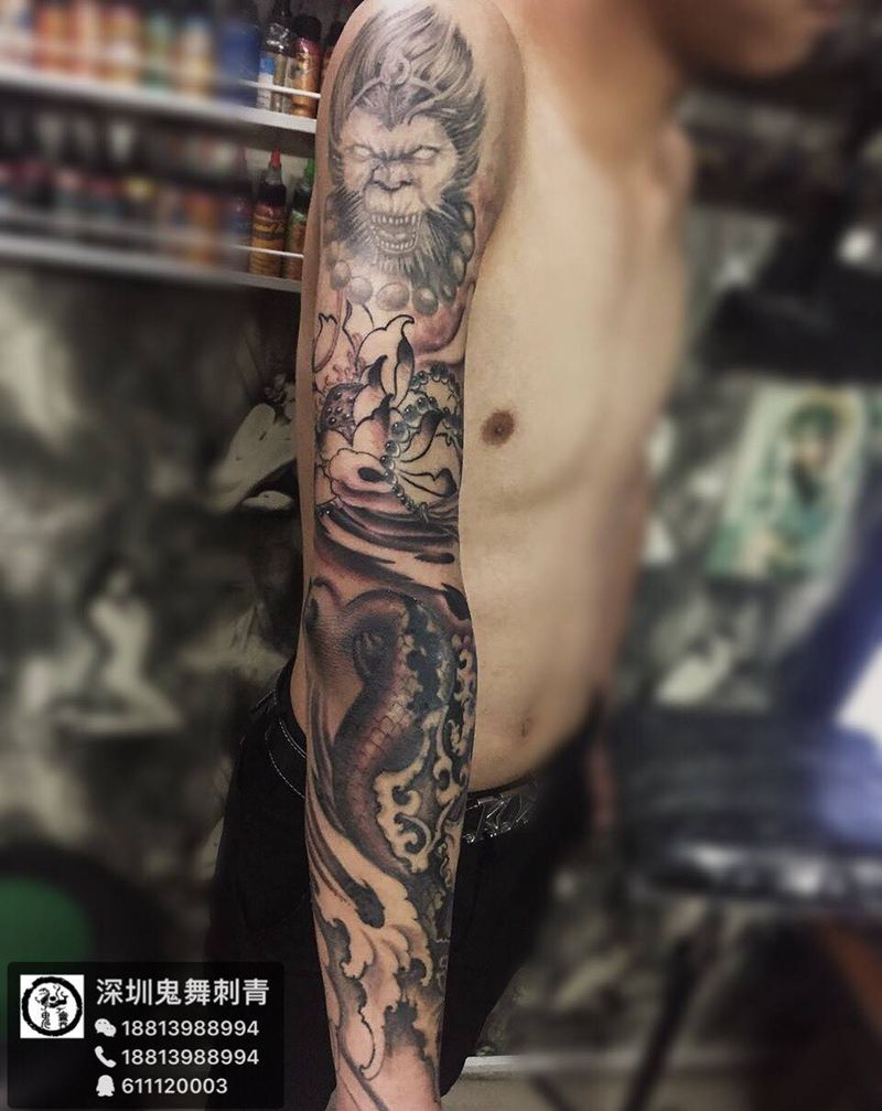 当前位置: 首页 >广东省深圳市纹身店-深圳鬼舞刺青工作室纹身图案>黑灰花臂纹身图片