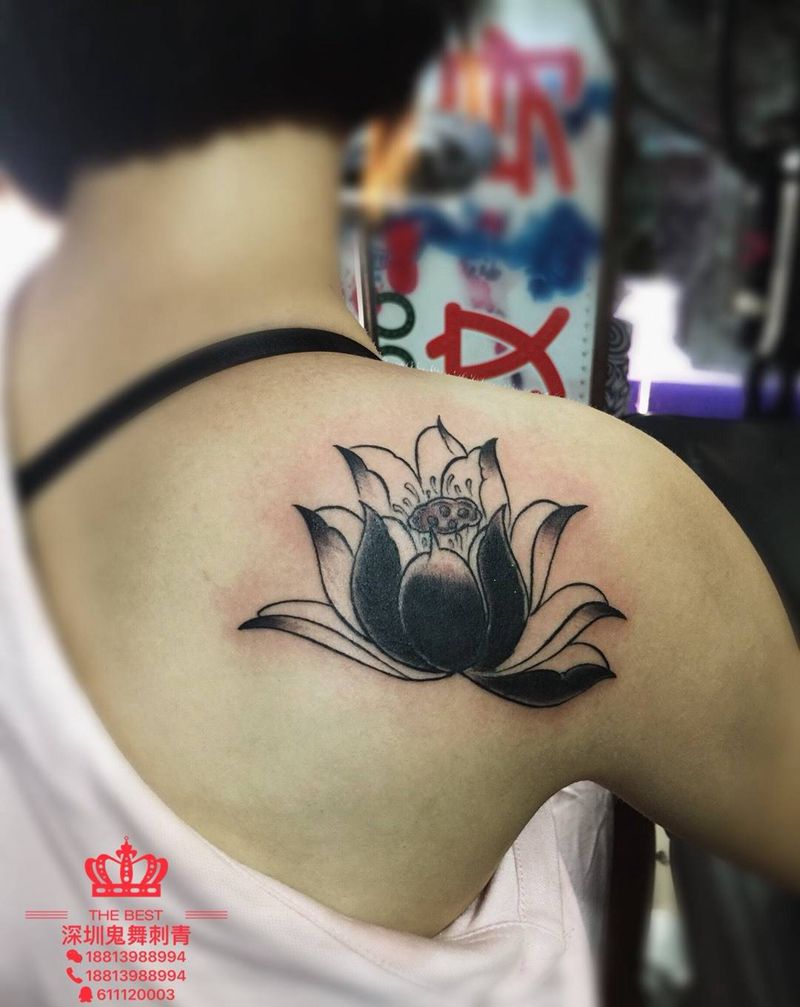 一组15张莲花纹身手