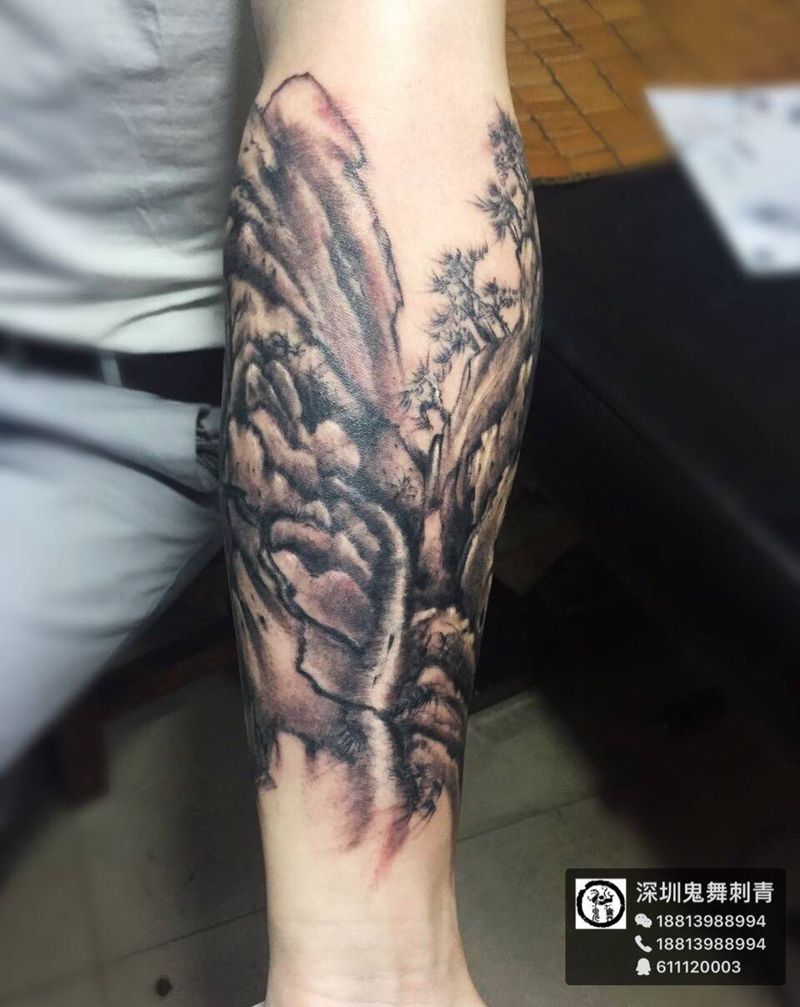 当前位置: 首页 >广东省深圳市纹身店-深圳鬼舞刺青工作室纹身图案>山水花臂待续……纹身图片