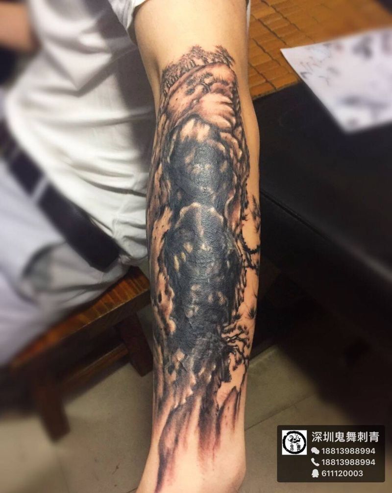 山水花臂待续……纹身图片