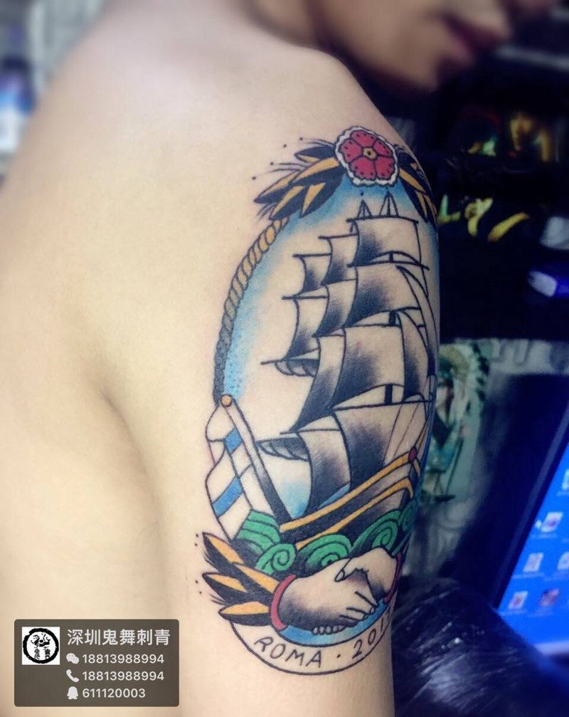 • 纹身吧推荐的披肩图腾半胛纹身图案作品展示