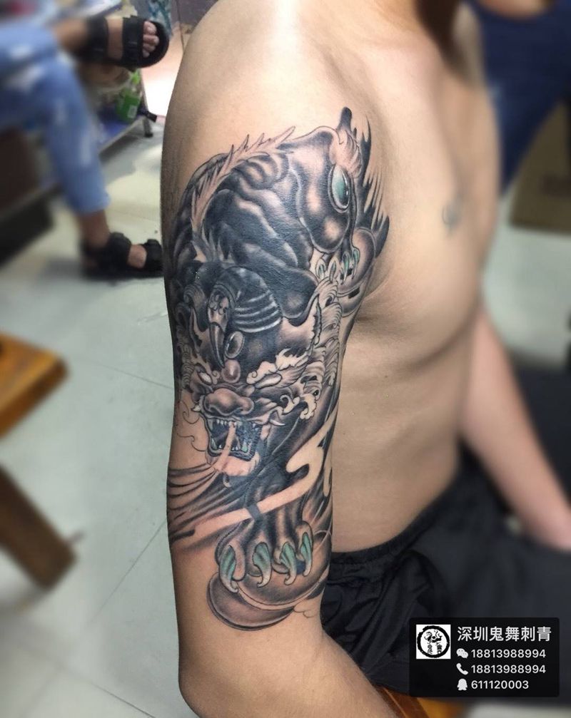 • H老虎花臂手稿图片 老虎个性纹身