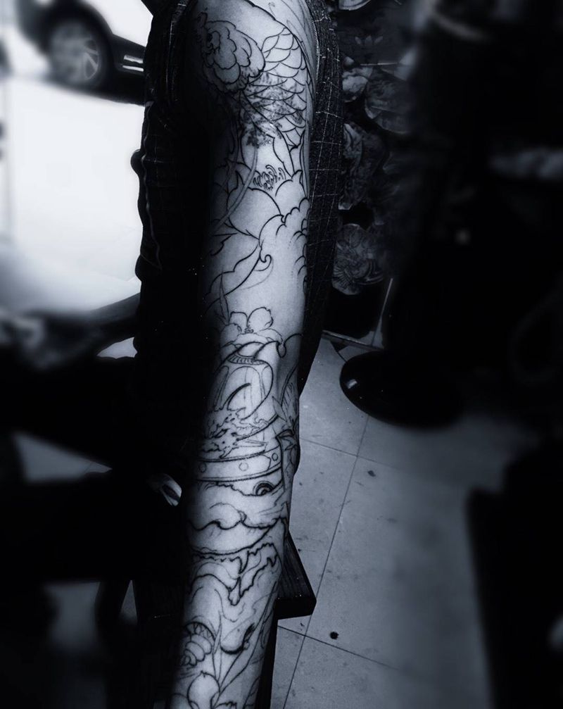 当前位置: 首页 >广东省深圳市纹身店-深圳鬼舞刺青工作室纹身图案>花臂——线纹身图片