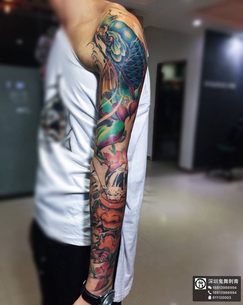 当前位置: 首页 >广东省深圳市纹身店-深圳鬼舞刺青工作室纹身图案>重彩花臂未完纹身图片