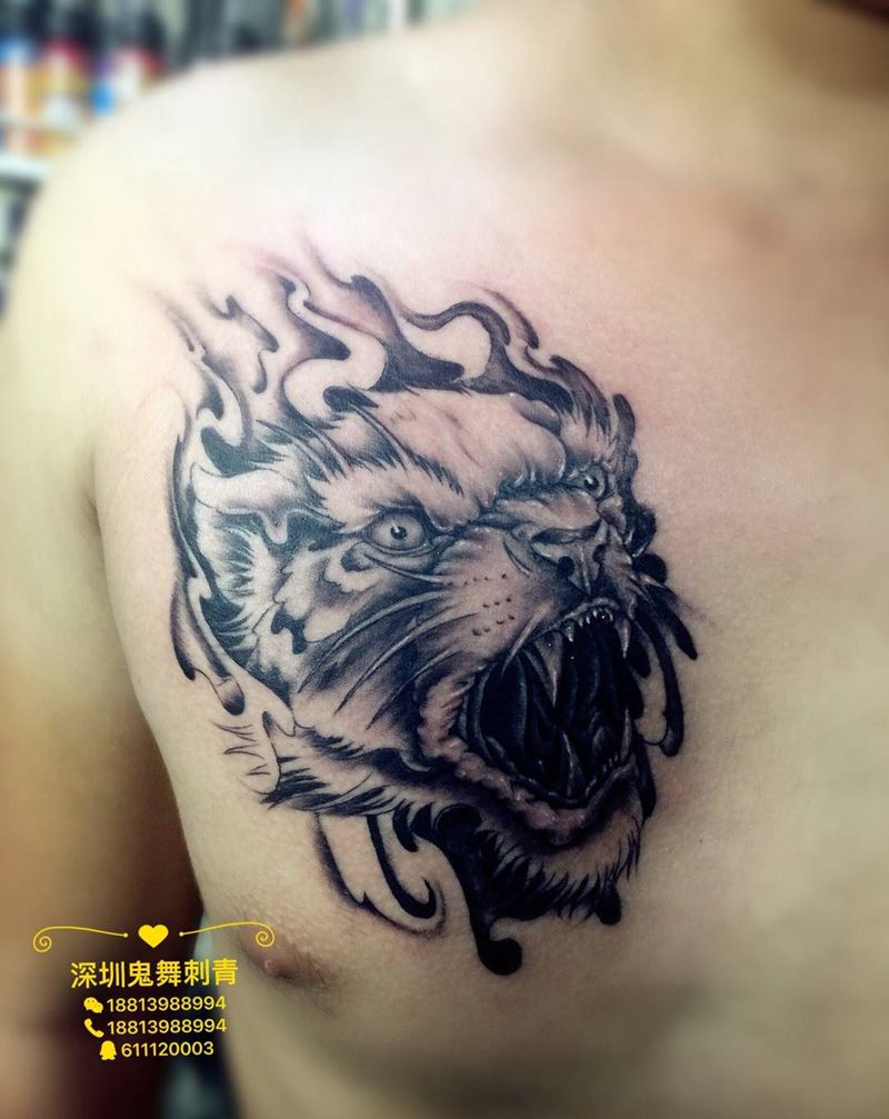 当前位置: 首页 >广东省深圳市纹身店-深圳鬼舞刺青工作室纹身图案>虎逼纹身图片