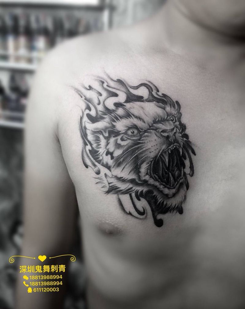 当前位置: 首页 >广东省深圳市纹身店-深圳鬼舞刺青工作室纹身图案>虎逼纹身图片