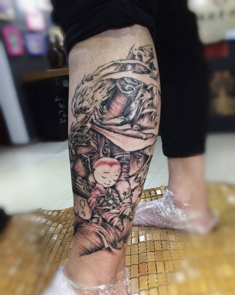 • T网红王老大花腿龙纹身图片_腿部新传统纹身图案