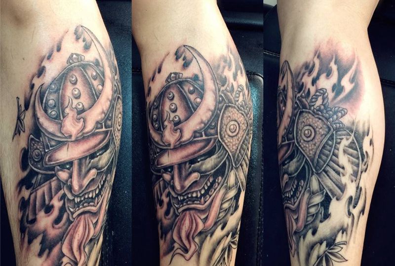 当前位置: 首页 >广东省深圳市纹身店-深圳鬼舞刺青工作室纹身图案>小腿武士纹身图片