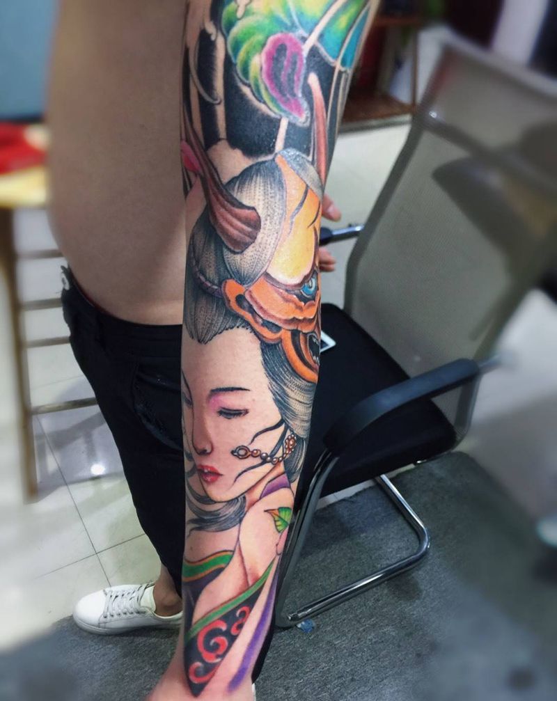 当前位置: 首页 >广东省深圳市纹身店-深圳鬼舞刺青工作室纹身图案>花臂未完纹身图片