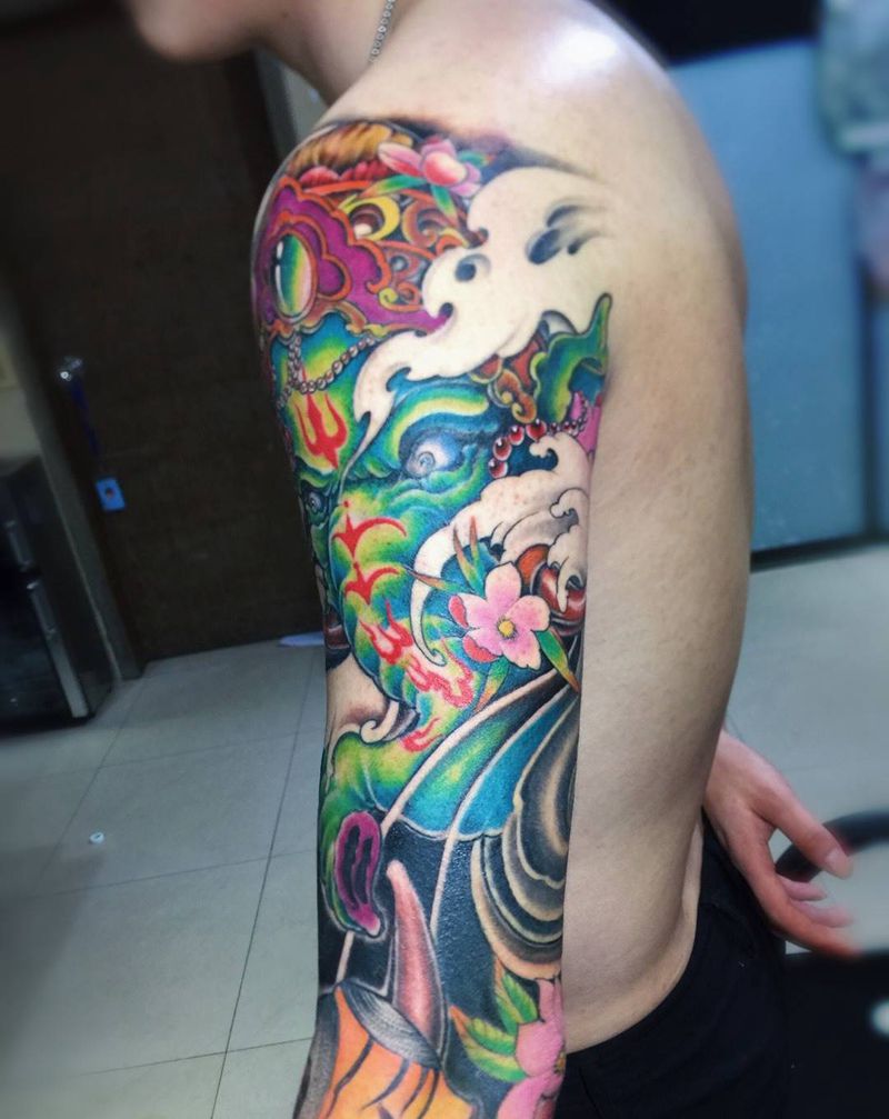 当前位置: 首页 >广东省深圳市纹身店-深圳鬼舞刺青工作室纹身图案>花臂未完纹身图片