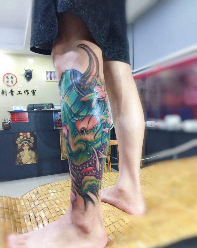 • T网红王老大花腿龙纹身图片_腿部新传统纹身图案