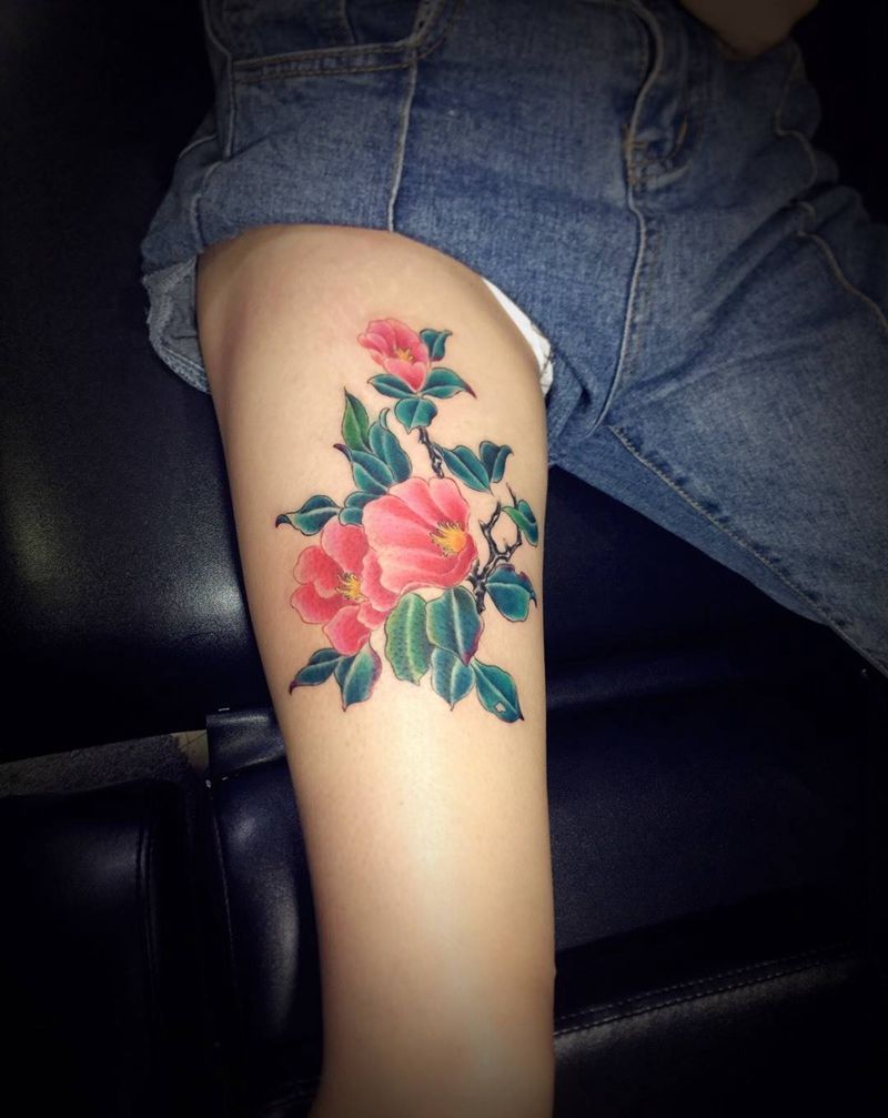 • T网红王老大花腿龙纹身图片_腿部新传统纹身图案