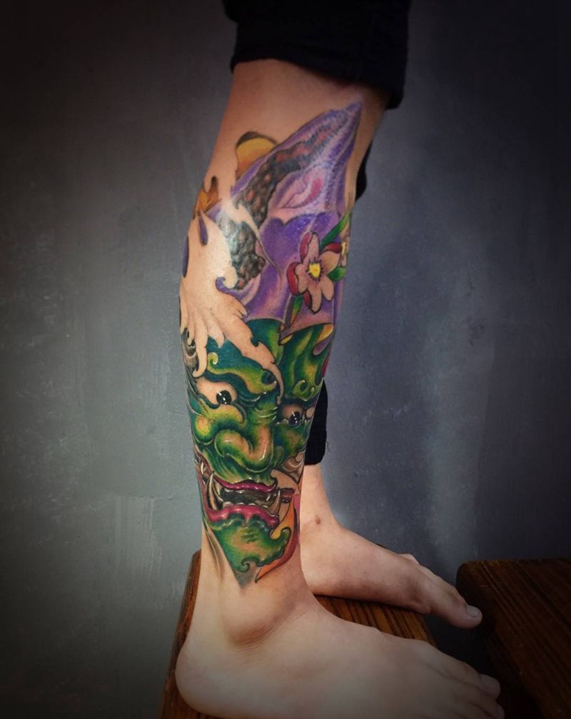 当前位置: 首页 >广东省深圳市纹身店-深圳鬼舞刺青工作室纹身图案>包小腿般若纹身图片