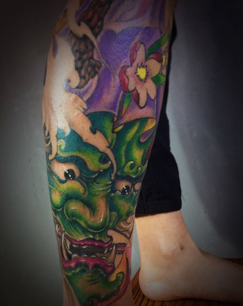 当前位置: 首页 >广东省深圳市纹身店-深圳鬼舞刺青工作室纹身图案>包小腿般若纹身图片
