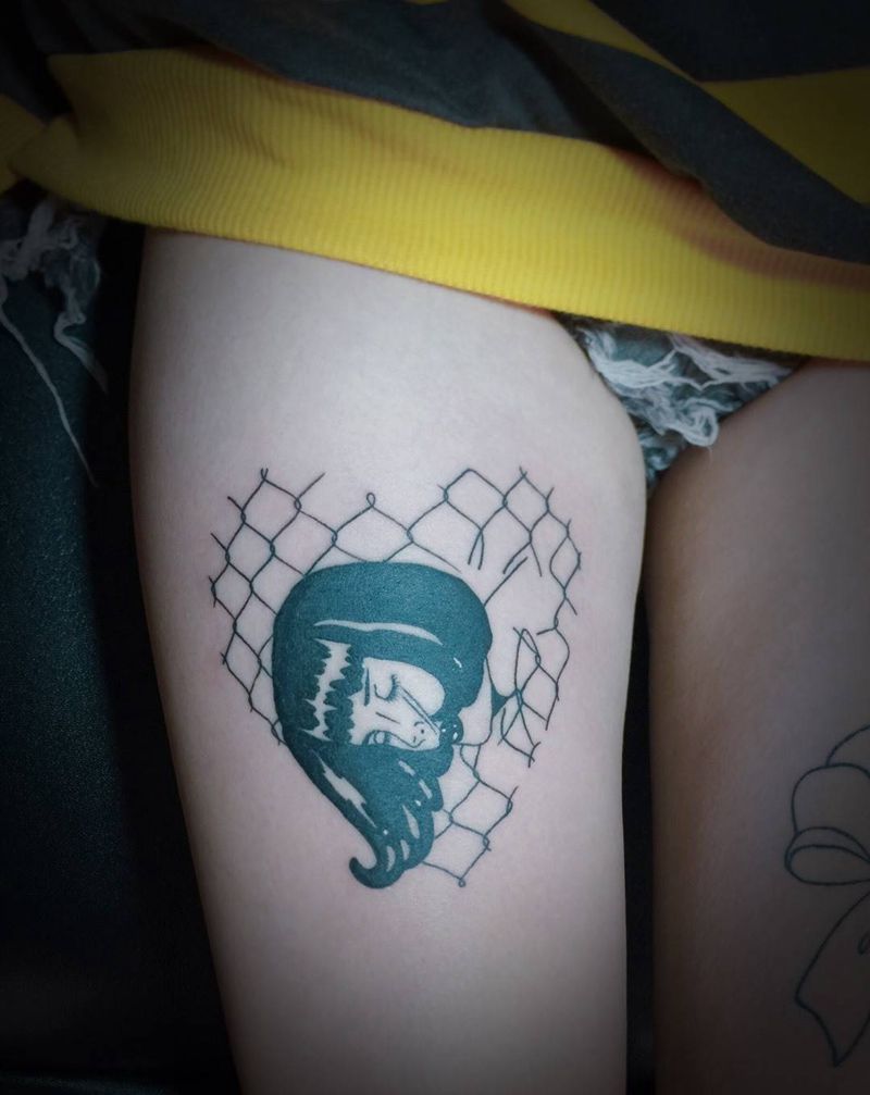 • T包小腿吹火男+阿多福纹身图片_腿部老传统新传统吹火男阿