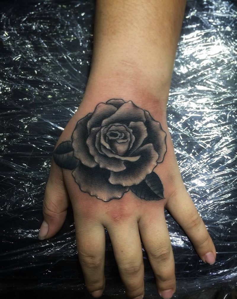 • 手背潮流时尚的玫瑰花眼睛纹身图案