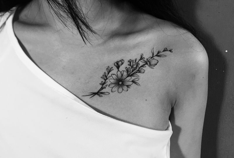 素花纹身图片_胸部纹身图案