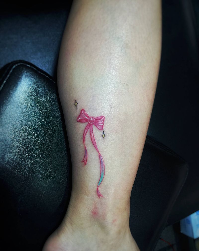 当前位置: 首页 >广东省深圳市纹身店-深圳鬼舞刺青工作室纹身图案>蝴蝶结纹身图片_腿部纹身图案