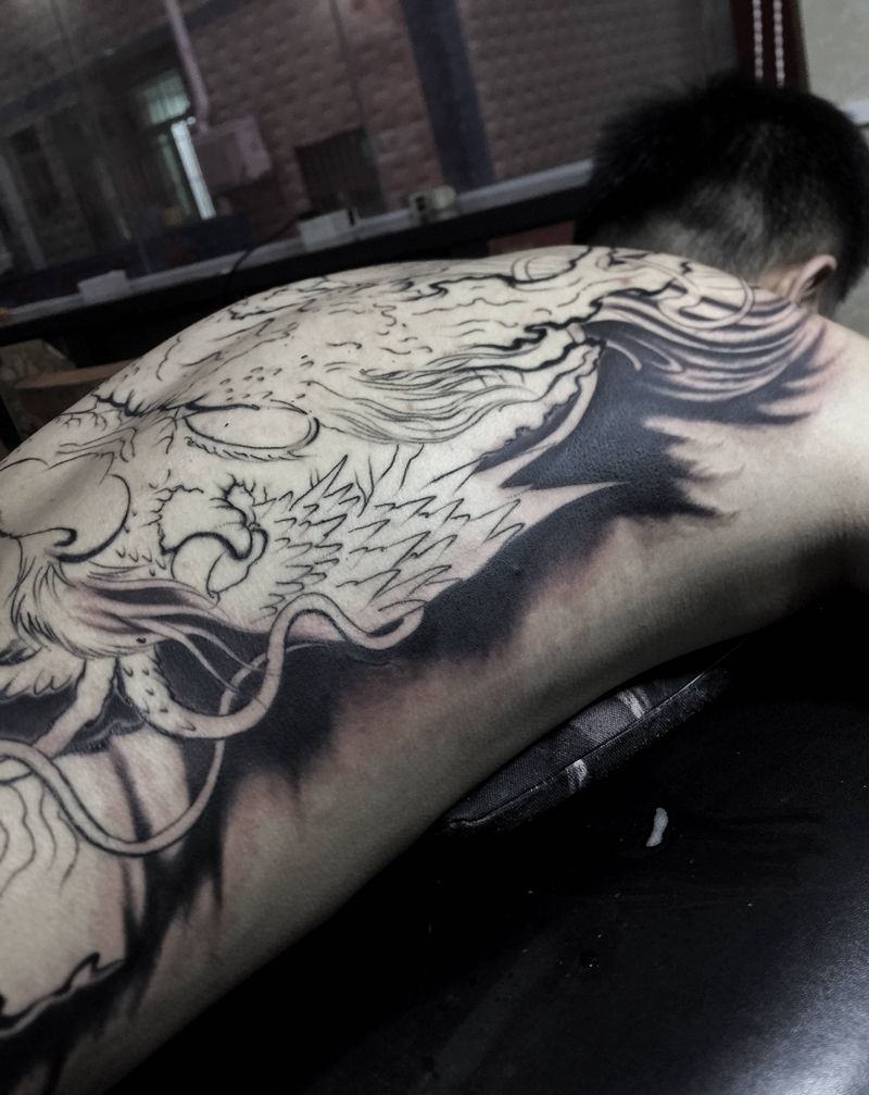 • 黑灰满背纹身图案