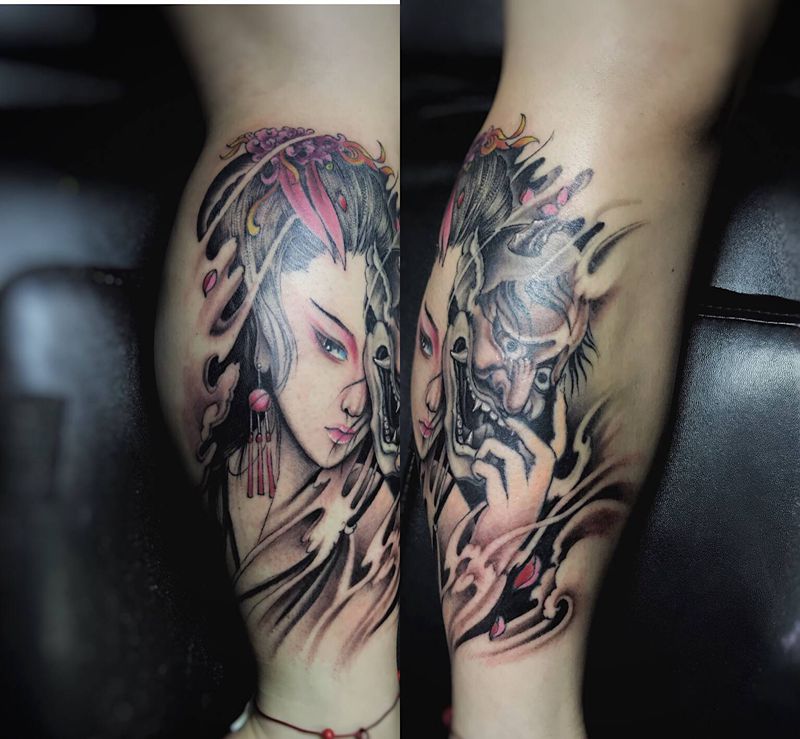 当前位置: 首页 >广东省深圳市纹身店-深圳鬼舞刺青工作室纹身图案>小腿艺妓纹身图片_腿部纹身图案
