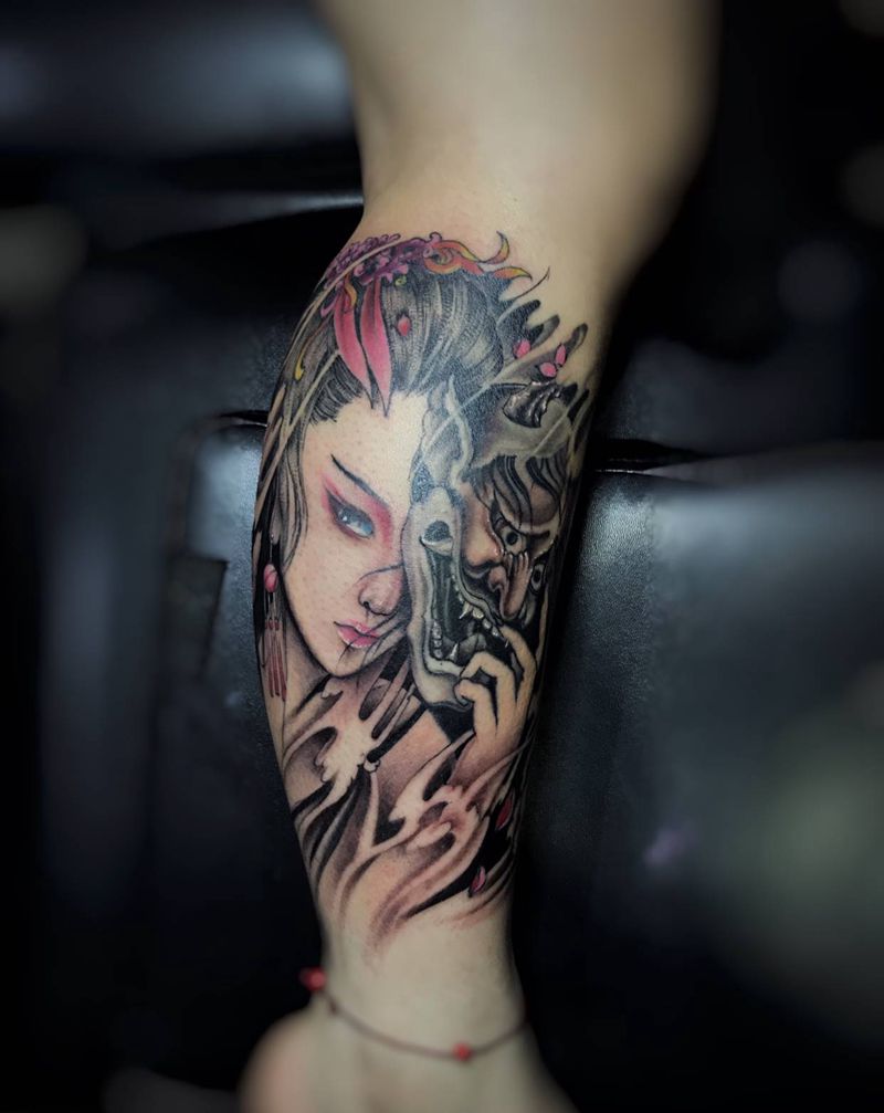 当前位置: 首页 >广东省深圳市纹身店-深圳鬼舞刺青工作室纹身图案>小腿艺妓纹身图片_腿部纹身图案