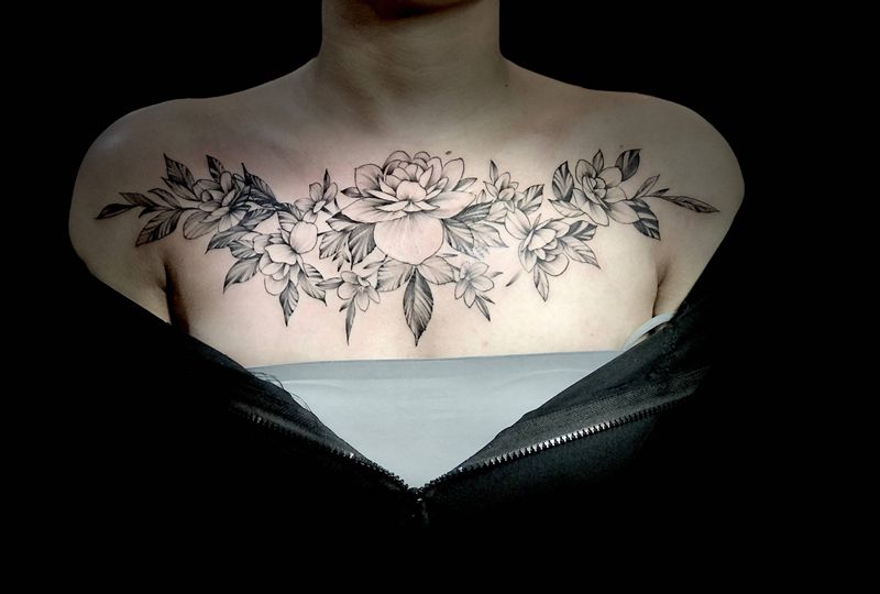 • 女性大花胸纹身_43张霸气漂亮的女性大花胸纹身图案作品