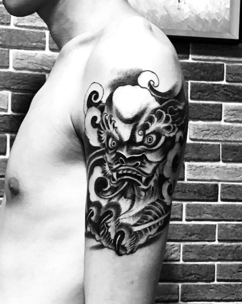 当前位置: 首页 >广东省深圳市纹身店-深圳玉锦刺青纹身图案>唐狮纹身图片