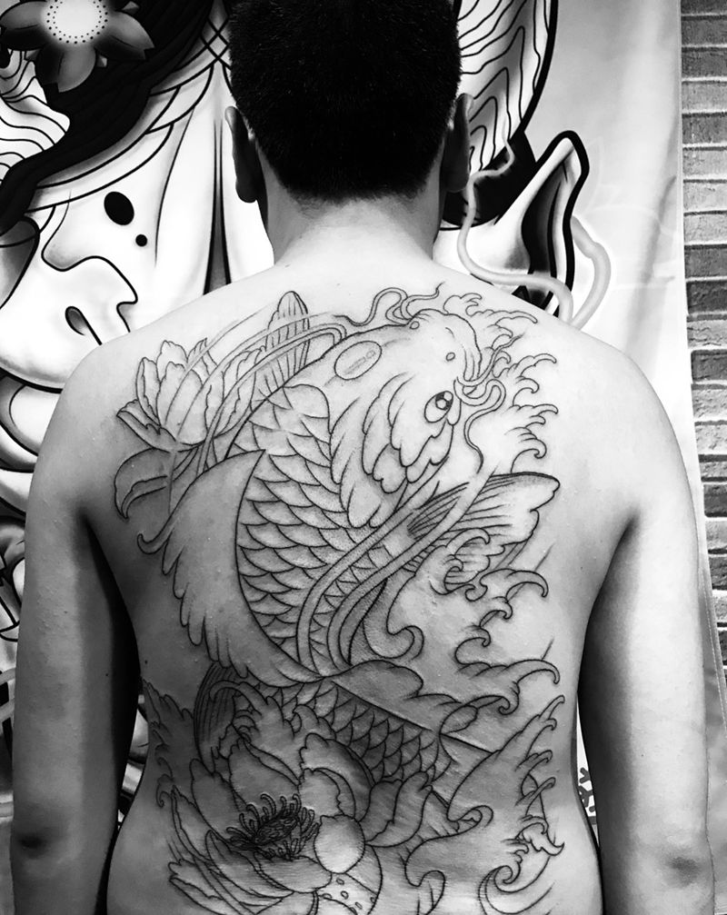 当前位置: 首页 >广东省深圳市纹身店-深圳玉锦刺青纹身图案>满背鲤鱼线条纹身图片
