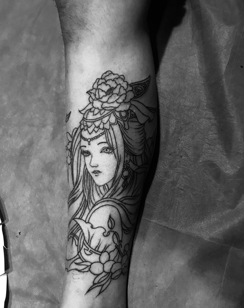 当前位置: 首页 >广东省深圳市纹身店-深圳玉锦刺青纹身图案>艺妓线条纹身图片