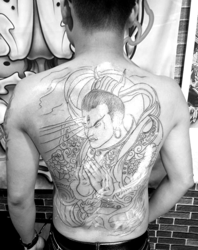 当前位置: 首页 >广东省深圳市纹身店-深圳玉锦刺青纹身图案>二郎神线条纹身图片