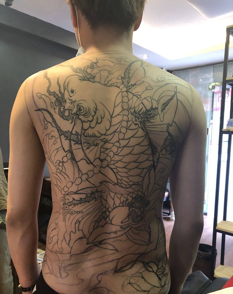 当前位置: 首页 >广东省深圳市纹身店-荆界纹身工作室纹身图案>满背鲤鱼(线条非本人)纹身图片_背部新传统纹身图案