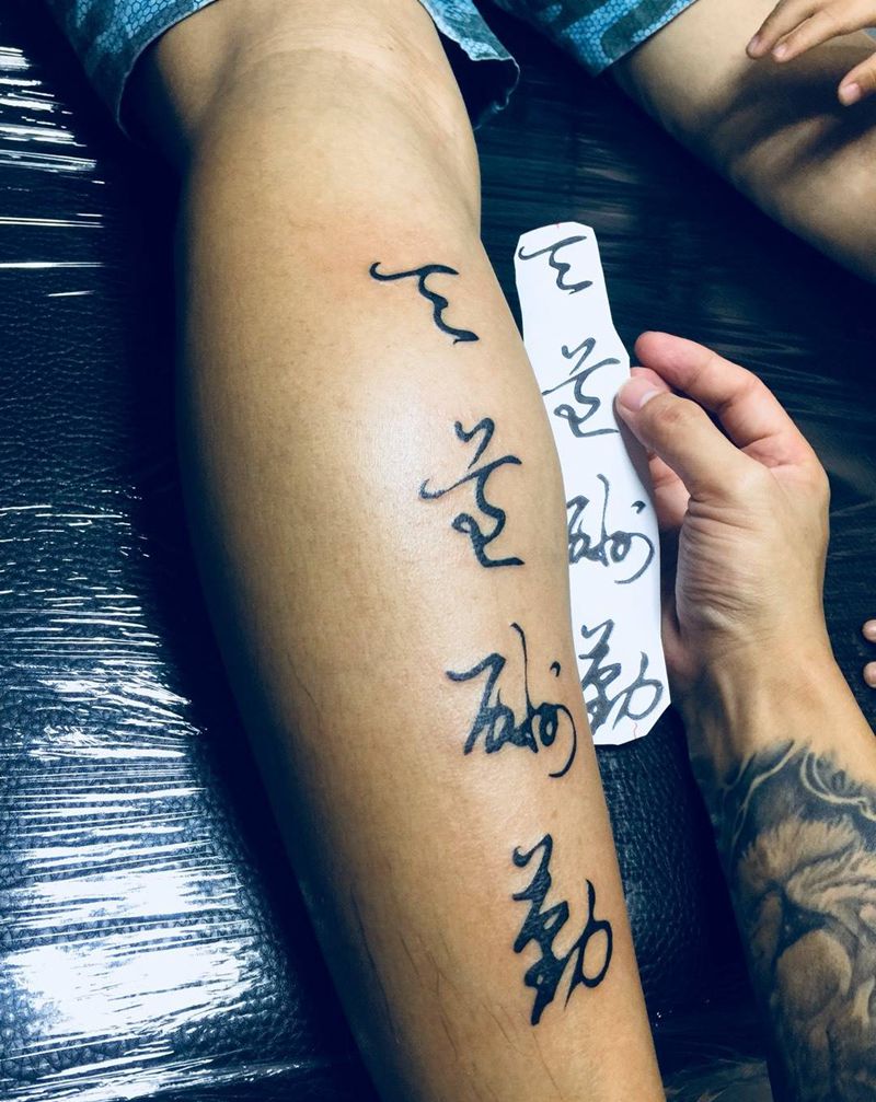 当前位置: 首页 >广东省深圳市纹身店-荆界纹身工作室纹身图案>天道酬勤纹身图片_腿部字符成品纹身图案
