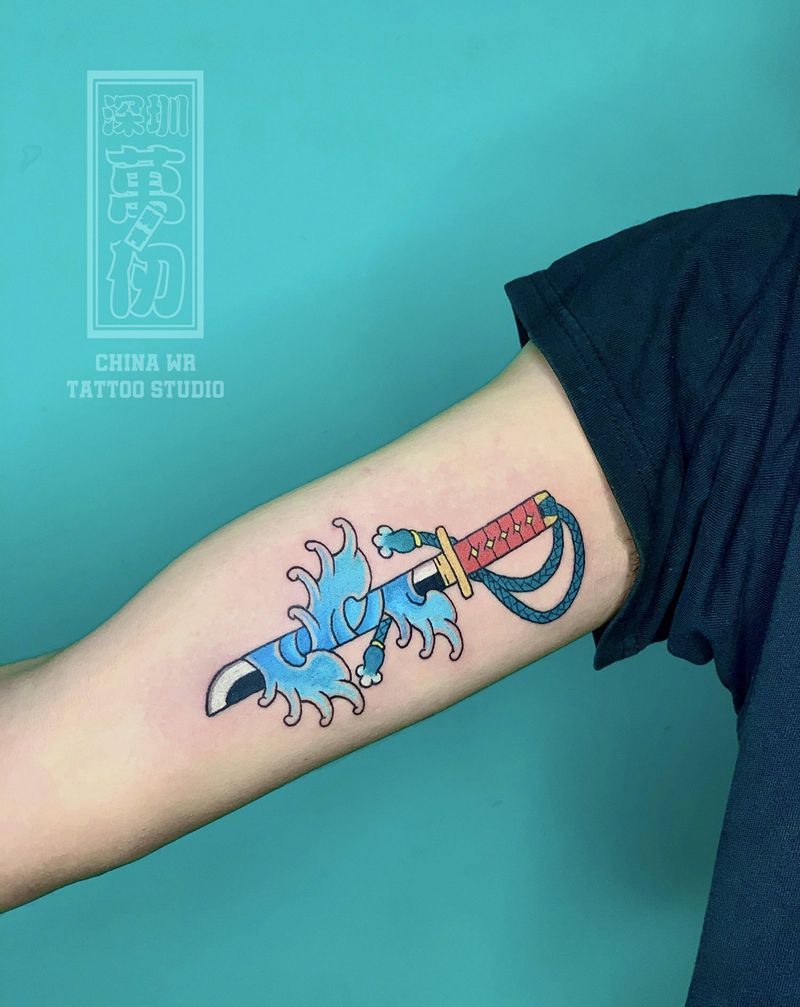 当前位置: 首页 >广东省深圳市纹身店-万仞刺青纹身图案>传统水浪小刀纹身图片_手臂手部新传统老传统刀水浪纹身图案