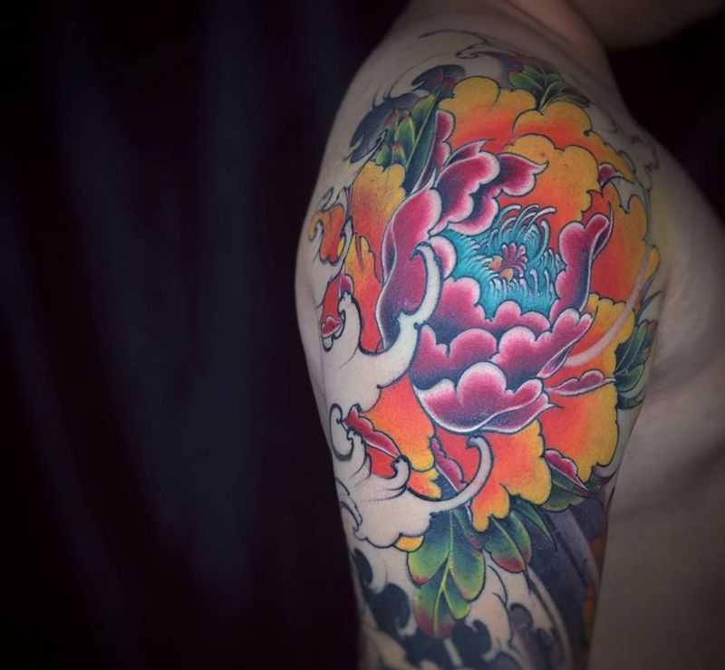 当前位置: 首页 >广东省深圳市纹身店-万仞刺青纹身图案>国色天香 富贵牡丹纹身图片