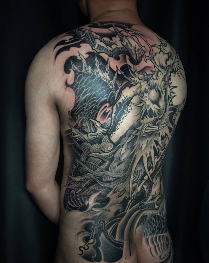 • T云龙九郎纹身图片_背部老传统云龙九郎纹身图案