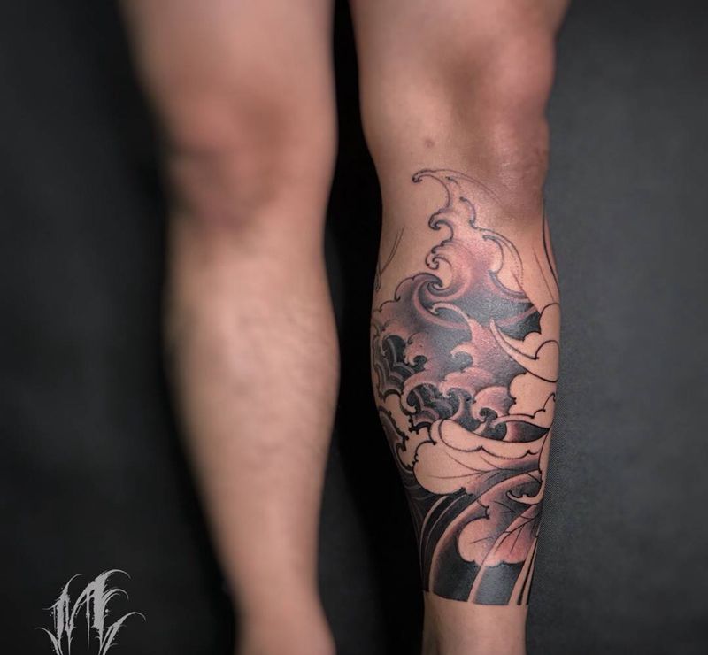 • T网红王老大花腿龙纹身图片_腿部新传统纹身图案