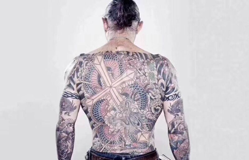 • 黑灰满背纹身图案
