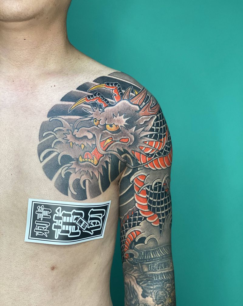 当前位置: 首页 >广东省深圳市纹身店-万仞刺青纹身图案>过肩龙纹身图片_肩部老传统纹身图案