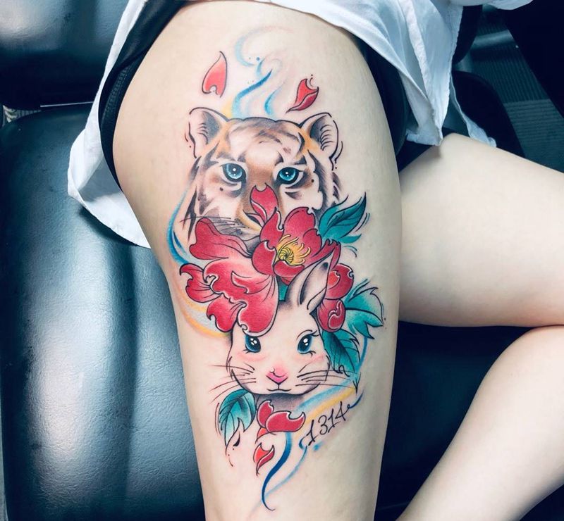 当前位置: 首页 >广东省深圳市纹身店-万仞刺青纹身图案>水彩 - 老虎 兔子纹身图片
