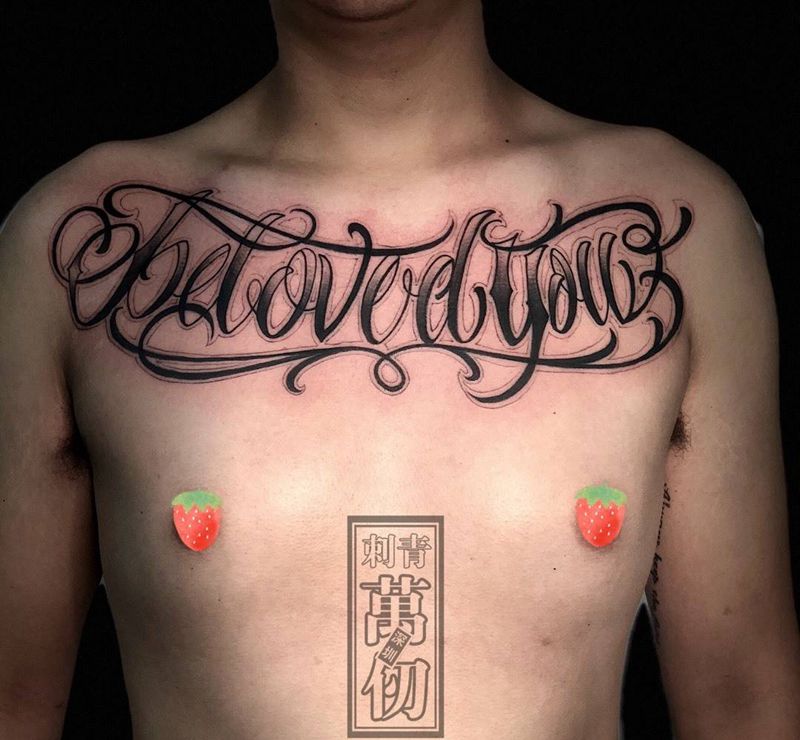 • T关于私处得爱!纹身图片_成品腹部清新字符图腾纹身图案
