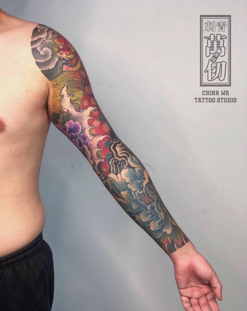 当前位置: 首页 >广东省深圳市纹身店-万仞刺青纹身图案>唐狮子纹身图片_手臂新传统纹身图案