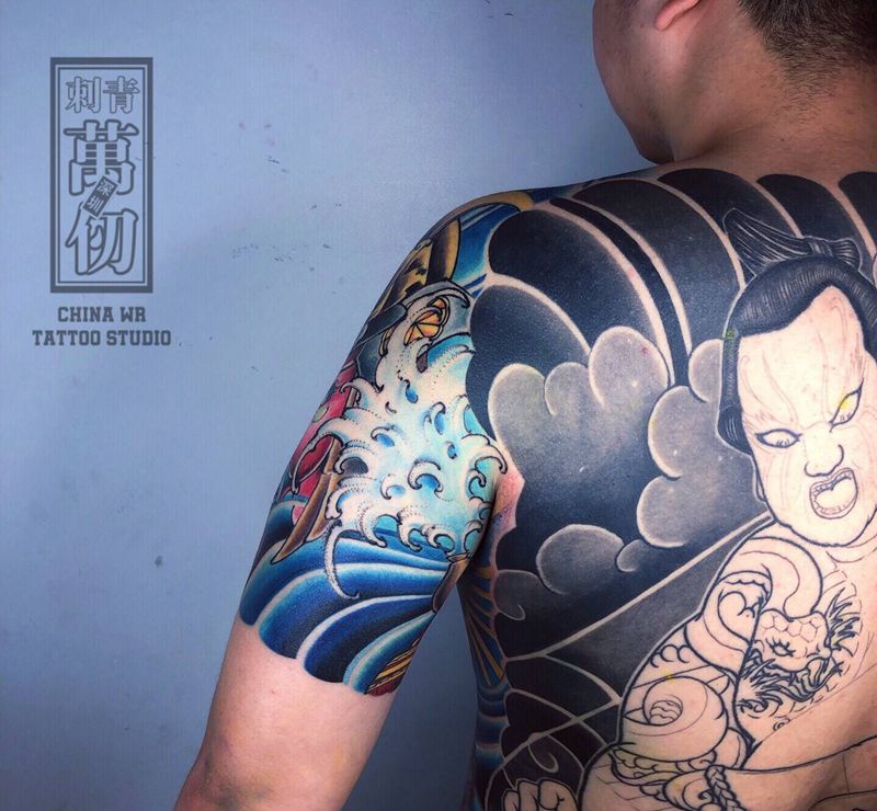 当前位置: 首页 >广东省深圳市纹身店-万仞刺青纹身图案>全彩 - 前甲纹身图片_手臂腰部新传统纹身图案