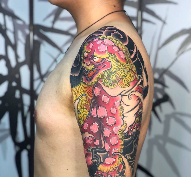 当前位置: 首页 >广东省深圳市纹身店-万仞刺青纹身图案>唐狮纹身图片