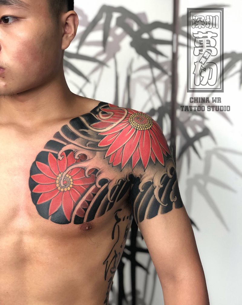 当前位置: 首页 >广东省深圳市纹身店-万仞刺青纹身图案>日式半甲 - 雏菊纹身图片_手臂老传统纹身图案